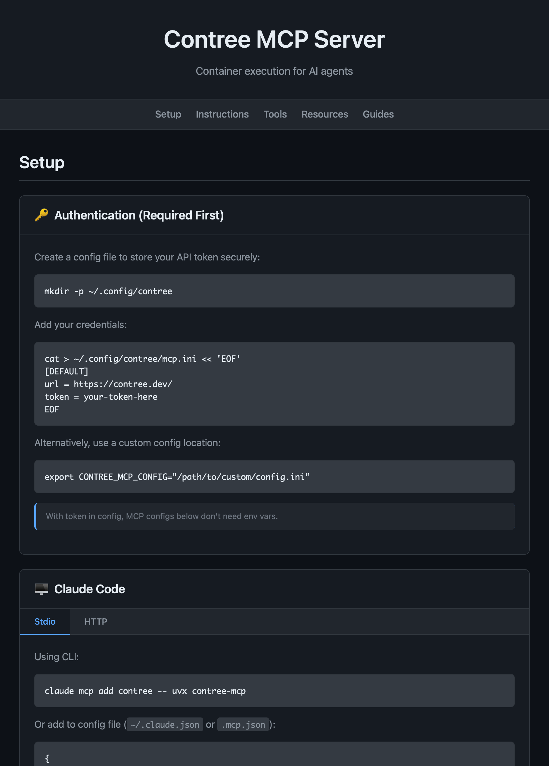Contree MCP is a Model Context Protocol server that gives AI agents secure sandboxed environments with full root access, network, and persistent images. Experiment fearlessly—every container is isolated, every image is immutable, mistakes are free.